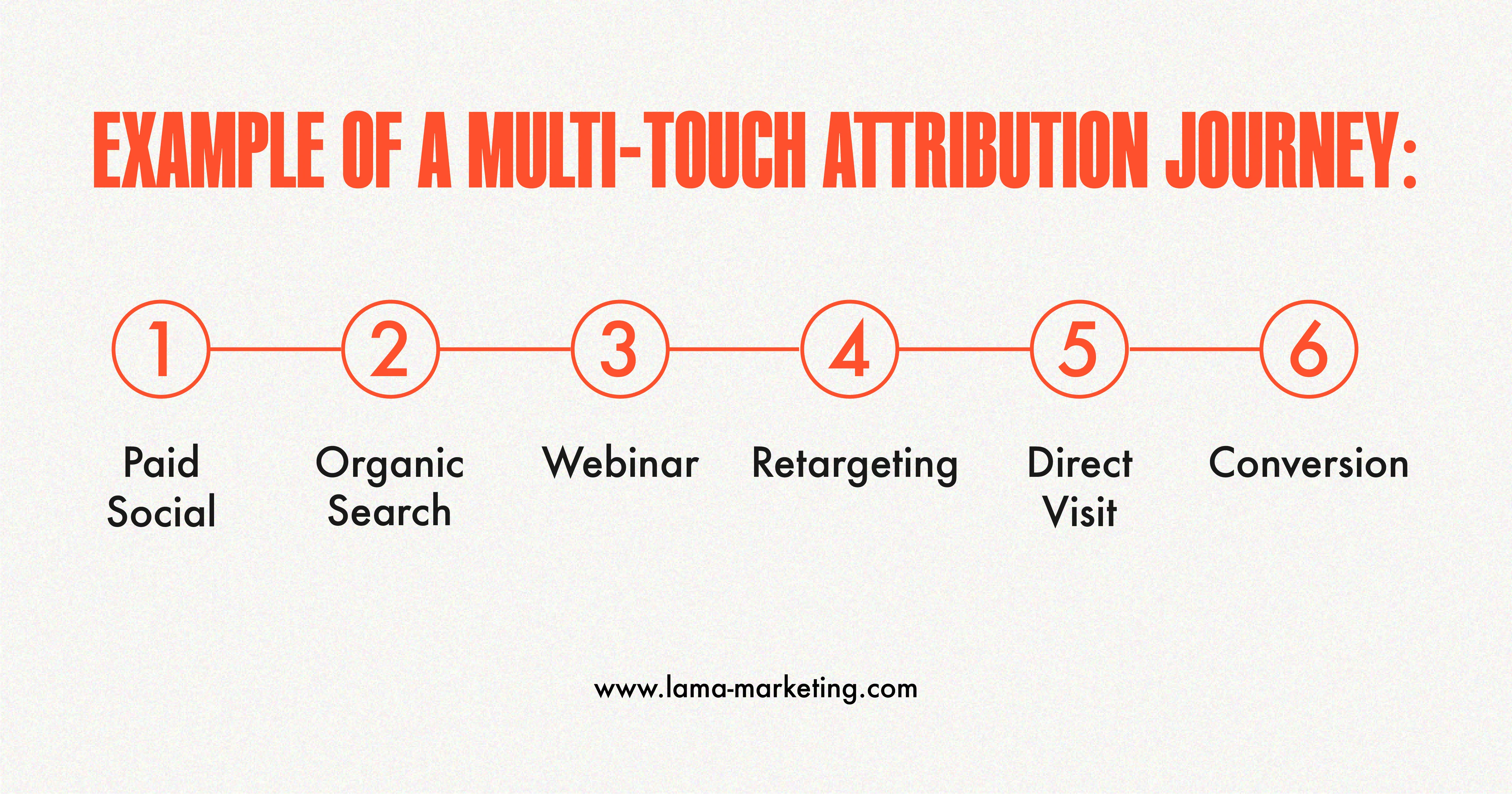 Consider this journey: paid social → organic search → webinar → retargeting → direct visit → conversion.